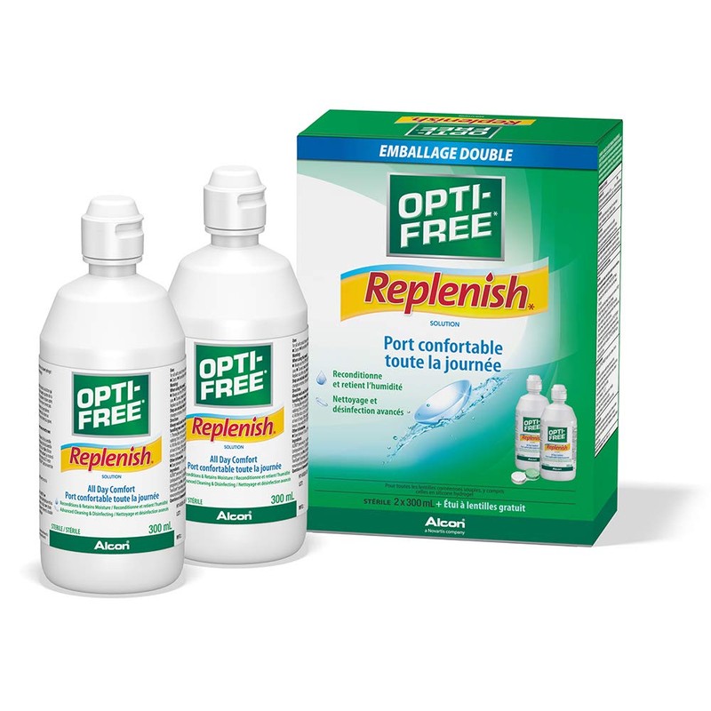 The OPTI-FREE® family of multipurpose contact lens cleaning solutions are created by the leading provider of vision and eye care products. OPTI-FREE® Replenish contact cleaning solution provides advanced cleaning and disinfecting for all contact lens. When contact lenses are soaked in OPTI-FREE® Replenish contact solution, the lens surface is reconditioned by a proprietary system called TearGlyde, which allows the lens surface to retain a thin later of moisture from your natural tears. OPTI-FREE® Replenish helps maintain a shield of moisture between the lens and the eye, for up to 14 hours of moist lens and clearer vision at the end of the day.