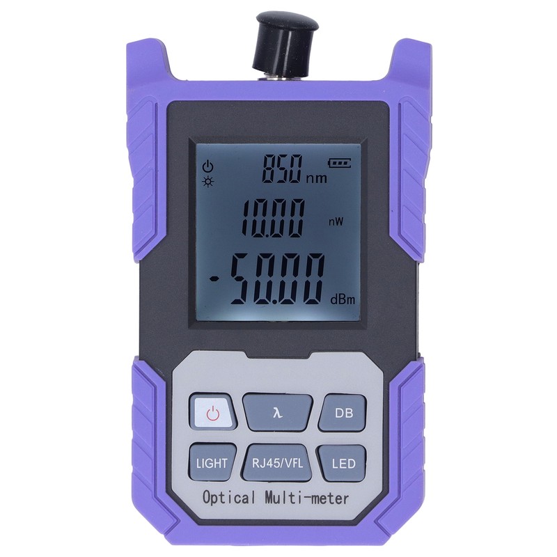 1、MULTIPLE USAGES: Used for measuring the continuous optical signal power, testing the connection and disconnection of fiber optic cable, troubleshooting optic line faults, testing fiber optic line losses. 2、APPLICABLE RANGE: Supports standard wavelength switching at 850nm, 980nm, 1300nm, 1310nm, 1490nm, 1550nm, 1625nm, suitable for 800‑1700nm optical fiber, compatible with SC FC ST connector. 3、PRODUCT FUNCTIONS: This fiber power meter has backlight switch button and flashlight, 120s auto power off, wavelength memory and user calibration, displays linear mW and nonlinear dBm at the same time. 4、EXCELLENT PARTS: The fiber optic tester adopts low power consumption single chip microprocessor for control, with complete functions and stable performance, the built in probe improves its service life. 5、APPLICABLE FIELDS: This handheld optical power meter is widely used in fields such as fiber optic cable construction and maintenance, fiber optic comm, fiber optic sensing, and optical CATV.