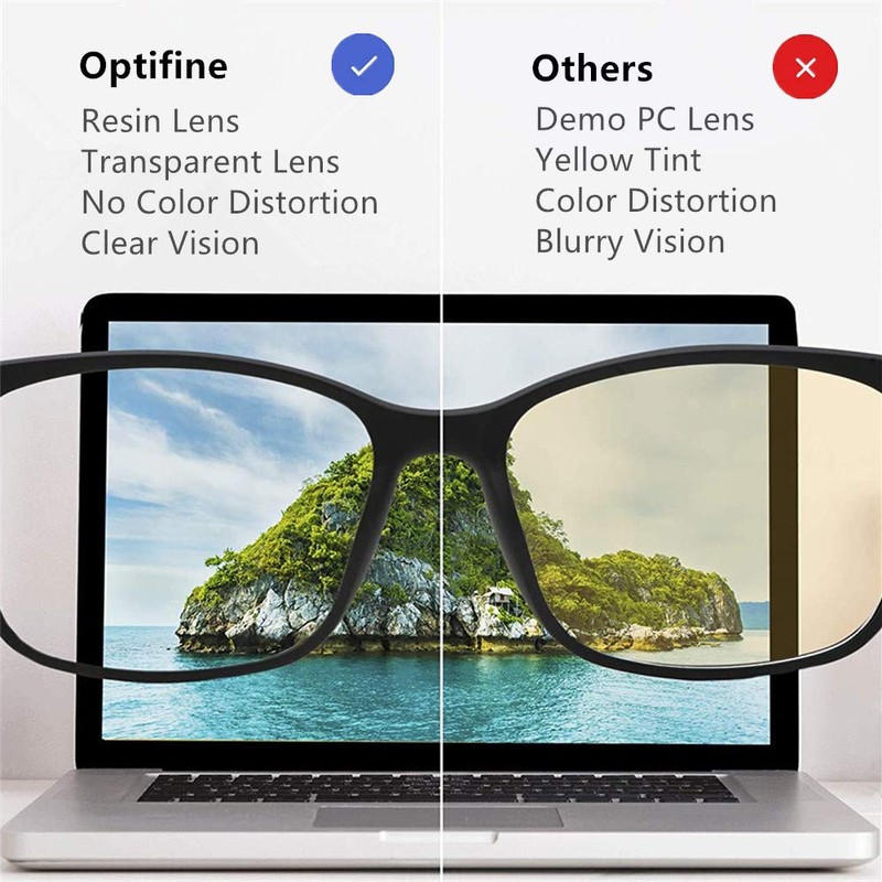 • 💚 ANTI BLUE LIGHT -- Staring at a computer screen all day can cause headache and nausea, Optifine Glasses will block 98% hurmful blue rays out, to minimize Digital Eye Strain caused by harmful blue light emitted from digital screens