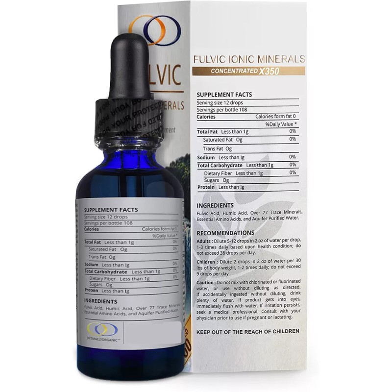Optimally Organic Water Extracted Fulvic Ionic Acid X350 Concentration with Essential Minerals for Enhanced Health and Wellness