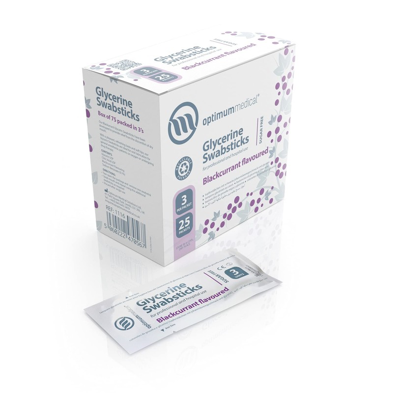 - Each pack contains 75 Optimum Medical Swabsticks - 25 bags, 3 swabs per bag