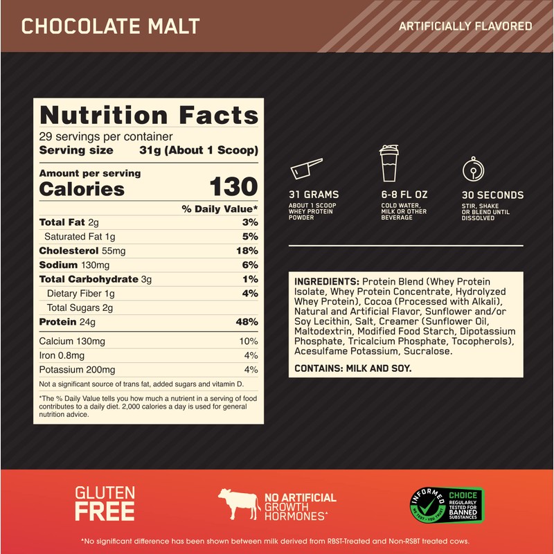 Optimum Nutrition Gold Standard 100% Whey Protein Powder, Chocolate Malt, 2 Pound (Packaging May Vary)