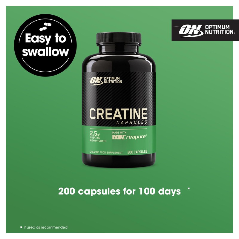Optimum Nutrition Optimum Nutrition Creatine Capsules with 2500 mg of Unflavoured Creatine Monohydrate per Serving, Creatine Food Supplement Capsules to support performance, 100 Servings, 200 Capsules