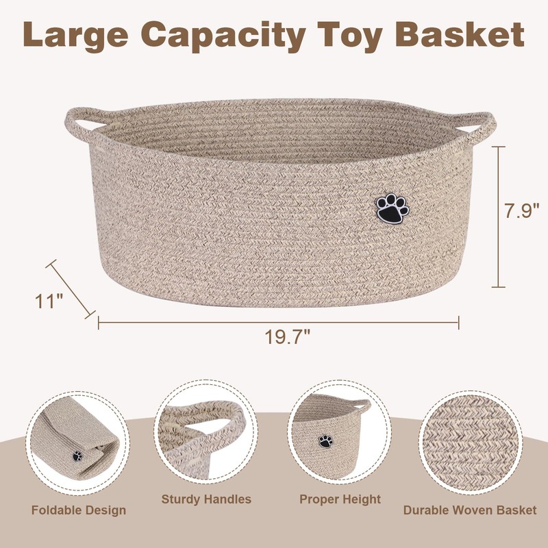 Optish Dog Toy Basket, Toy Box and Bin for Dog Cat Storage, 19.7" X 11" X 7.9" (30L) Large Woven Rope Basket for Blanket Storage, Living Room, Bedroom, Brown
