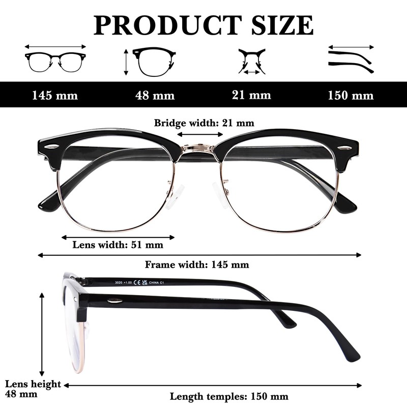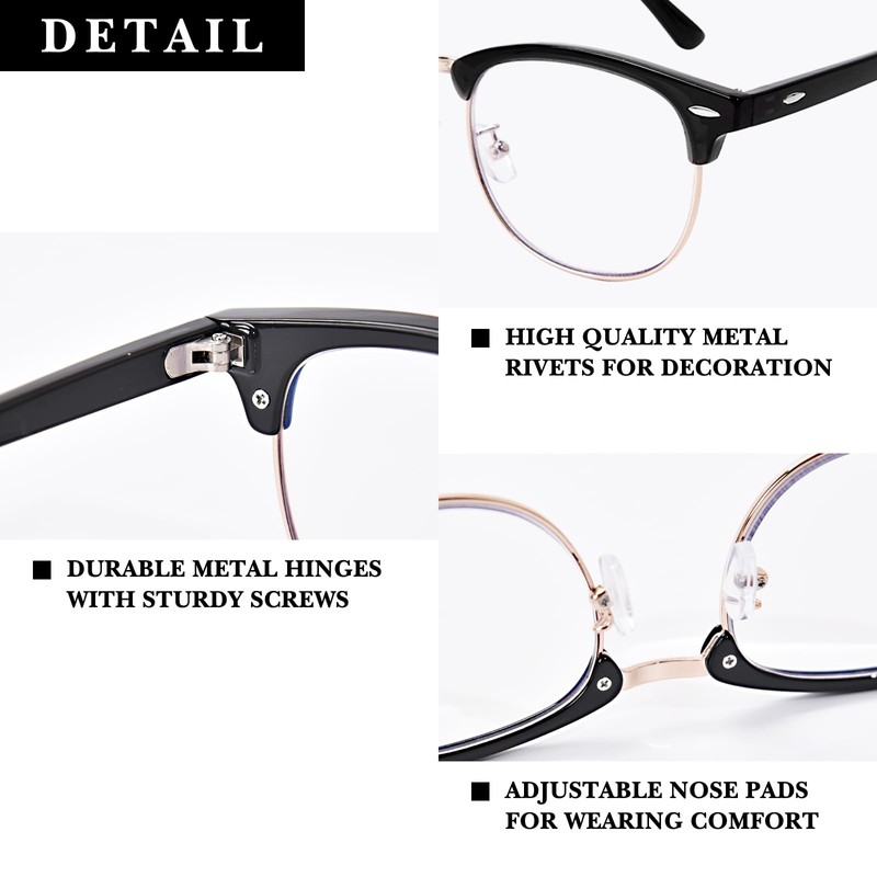- HIGH LIGHT TRANSPARENCY & BLUE LIGHT BARRIER: Our blue light blocking reading glasses are made of high light transmittance polycarbonate lenses, which can effectively filter out the harmful blue light and radiation from your computer or phone screen, clear and durable, take care of your eye health. Allows you to maintain a natural head and body posture, avoiding headaches or muscle tension while working, enjoy your digital time