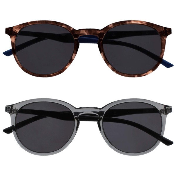 OPULIZE-Met 2 Pack Grandes Hombres Mujeres Marrón Azul Gris Negro Brazos Sol Lectores Gafas de Lectura UV400 SS6027 +3.00