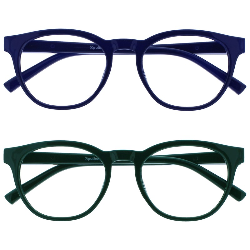 OPULIZE-Paquete de 2 Blu, gafas de lectura con bloqueo de luz azul, azul, verde, para juegos de ordenador, antideslumbrantes, para hombre y mujer, BB536 +2,50