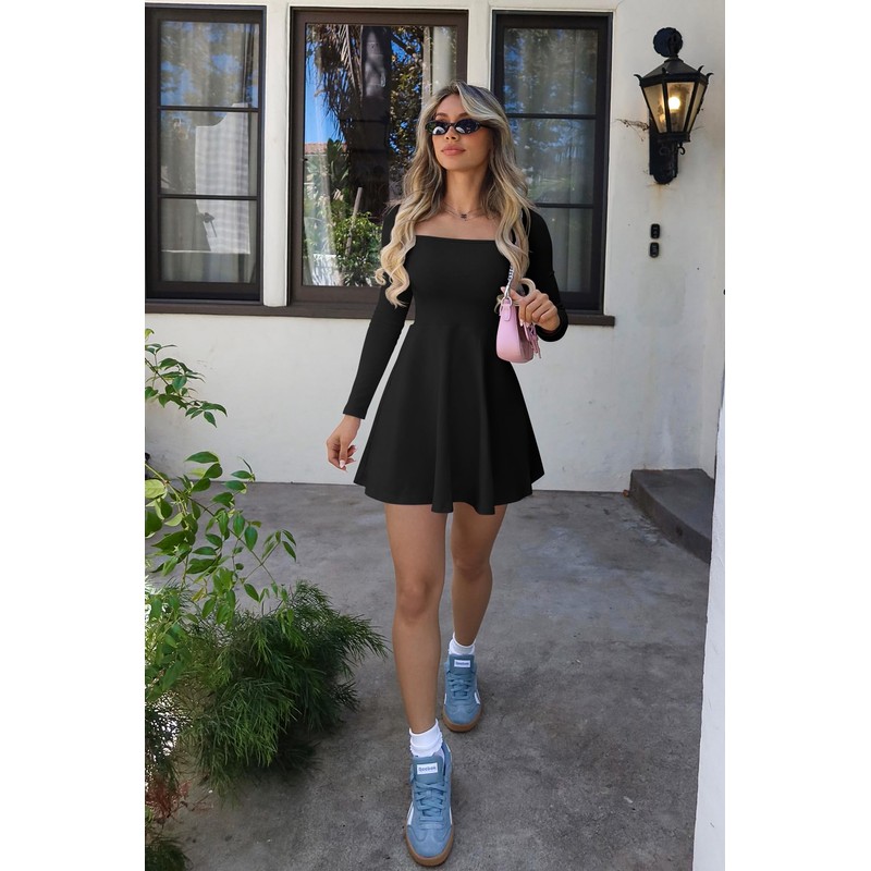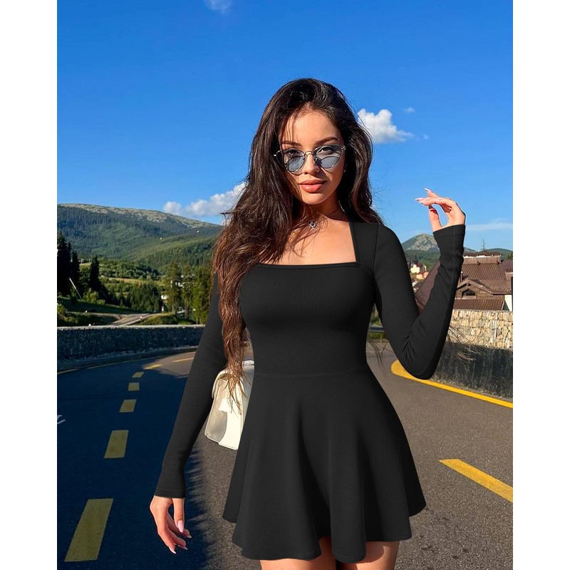 - Feature: Dress with A-line,square neckline, mini length,long sleeve, visually highlighting charmin figure and easily achieving supermodel proportions.Best womens, ladies and teen girl clothes.
