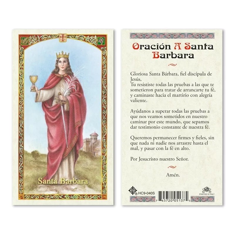 Oración A Santa Barbara tarjeta laminada