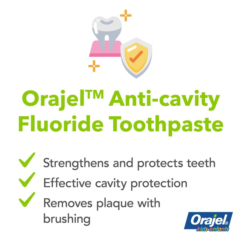 - FOR AGES 2+: Orajel Kids Anti-Cavity Fluoride Toothpaste is appropriate for independent brushers.