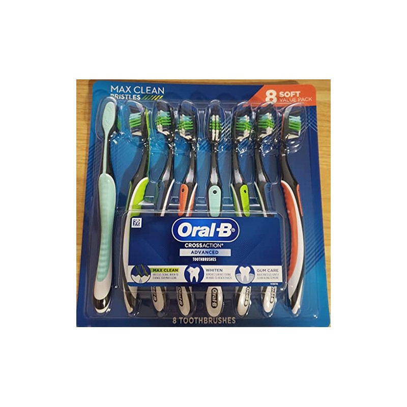 Oral-B Cross Action Advanced Toothbrush with Bacteria Guard Bristles, 8 Pack, 8Count (Soft)