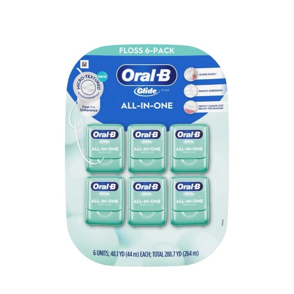 Oral-B Glide All-In-One Mint Flavor Dental Floss, 44 m, 6 pk.(288.7 Yards)