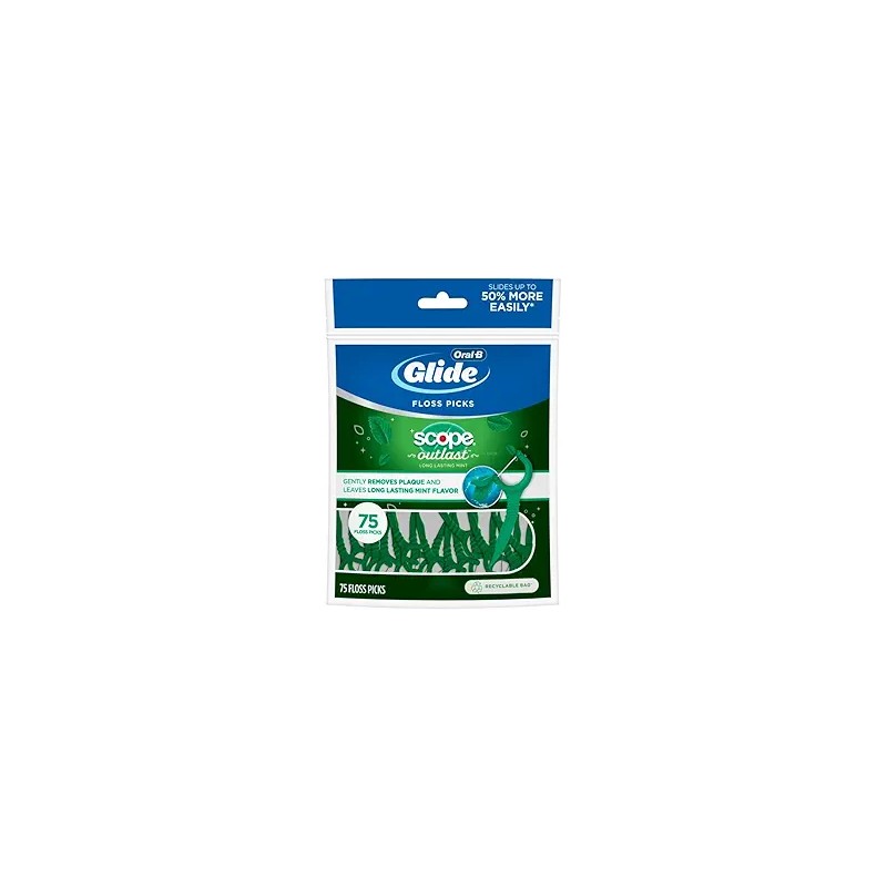 Oral-B Glide Floss Picks + Scope Outlast Flavor combines the freshness of Scope flavor and the silky-smooth texture of Glide floss with the ease of a floss pick. Oral-B Glide Floss Picks slide up to 50% more easily in tight spaces* and effectively removes plaque and food particles between teeth and just below the gumline. Oral-B is the #1 Dentist Recommended Floss Brand.
