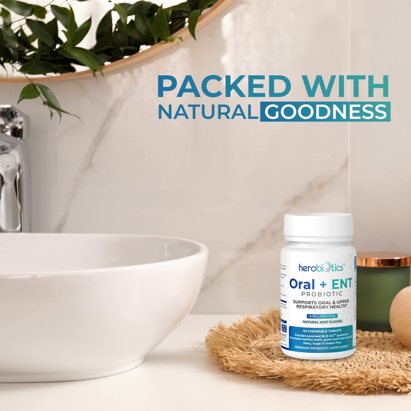 Oral Probiotics for Better Breath, Gingivitis, Strep Throat, Tonsil Stones, ENT - 6 Bn CFU Oral Probiotics with Lactobacillus Reuteri, L. Plantarum & BLIS K12-45 Chewable Tablets