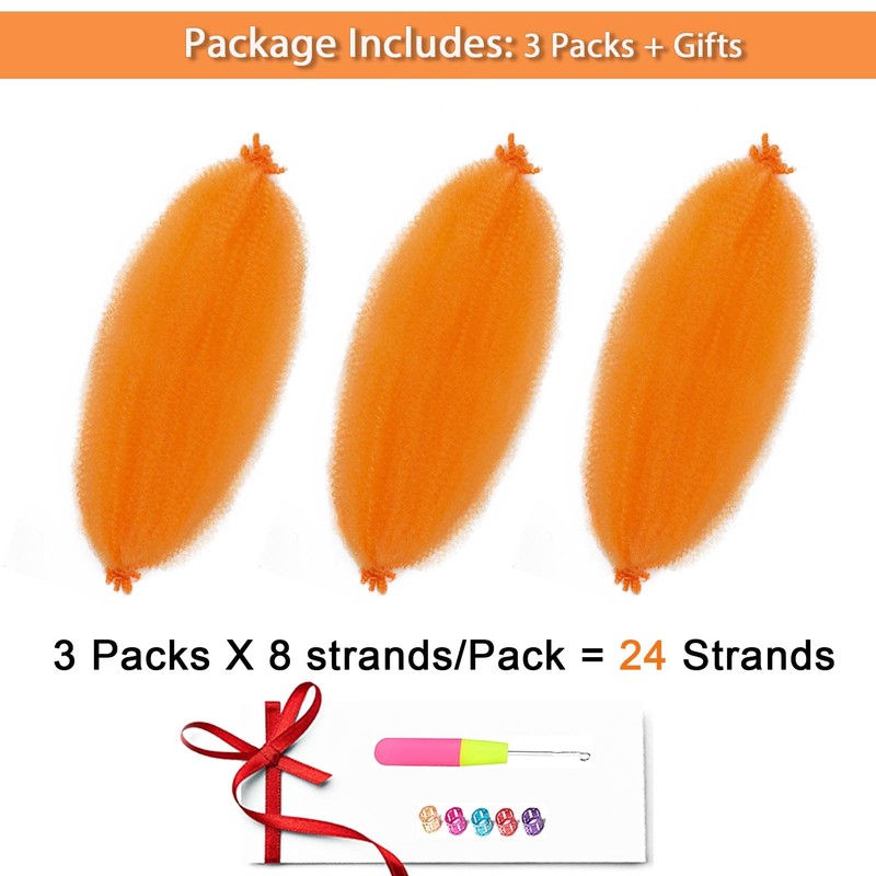 - 【Product Specifications】:Orange Afro Twist Hair Length: 16 inch, Weight: 40±5g/Pack, 8 strands/Pack, 3 packs/Lot. Usually 6-8 packs can full a head (with Faux locs). There are many Colors for you to choose from. Package included: 3 packs 16inch Afro Springy Twist Hair+1crochet Needle+5colorful Beads