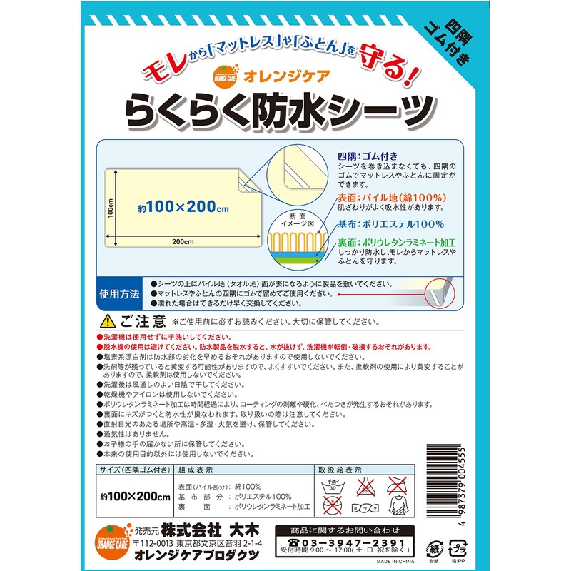 Orange Care Products Easy Waterproof Sheet Full Body Elastic Corners 1 Piece