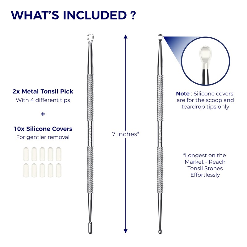 - The Ultimate Tonsil Stone Remover Tool: Struggling with bad breath and throat discomfort? The ORAVIX metal tonsil stone pick makes tonsil stone removal easy, safe and effective. With two 7’’ picks and 4 different tips, they reach deep to tackle even the most stubborn stones.