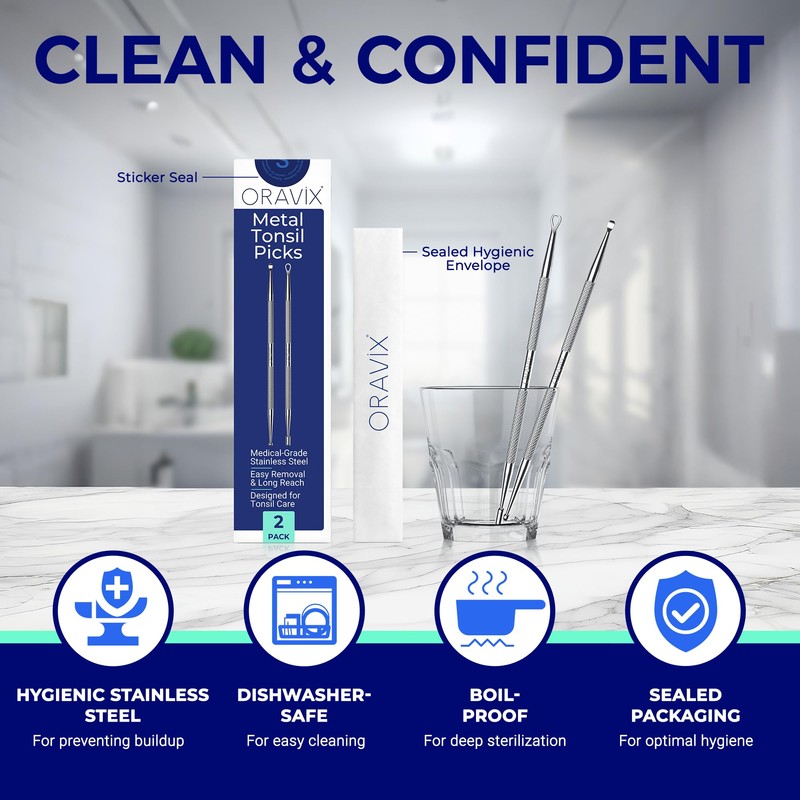 - Safe & Effortless Removal: Still using bobby pins, cotton buds, or ear picks to remove tonsil stones? The ORAVIX tonsil cleaner is specially designed to meet your tonsils need. The tonsil stones remover non-slip grip gives you maximum control, while the soft silicone tips ensure a gentler, more comfortable removal experience.