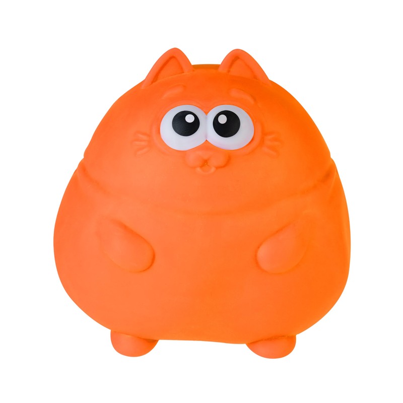 - Orange colored. Made with a custom blended, extra-strength Thermoplastic Rubber (TPR) that makes Pudge the Chunky Kitty super soft and squishy. Highly durable and washable (just give a rinse with water when needed), this chubby cat is ready to provide long lasting fun and stress relief.