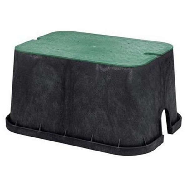 The 20 In. Rectangular Valve Box is made with durable, long-lasting materials. The overlapping lid protects valves from dirt and sand. The built-in locking nut keeps the lid securely in place.