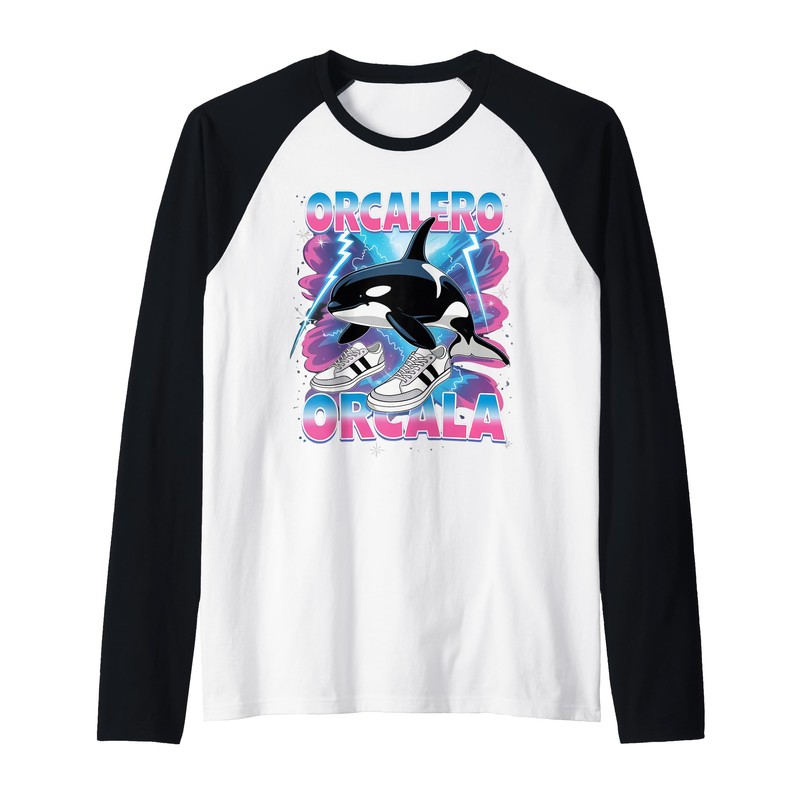 Orcalero Orcala Italian Brainrot Memes Oddly Specific Whale Raglan Baseball Tee