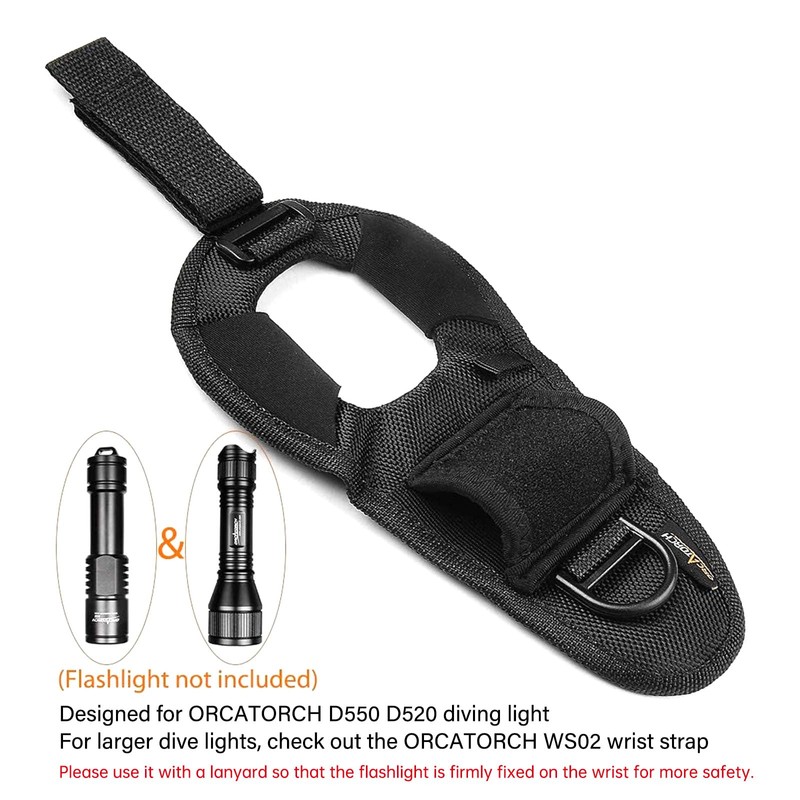 ★ Consejos amigables: si vas a utilizar la luz de buceo D520/D550 con esta correa de muñeca, te sugerimos que asegures de fijar la luz de forma segura a la correa de muñeca con un cordón. La correa de muñeca es para liberar tu mano, mientras que el cordón puede evitar que la luz se caiga de la correa de muñeca. (No incluye linterna). Si la correa de muñeca es demasiado grande para ti, te sugerimos que uses un guante antes de usar la correa de muñeca.