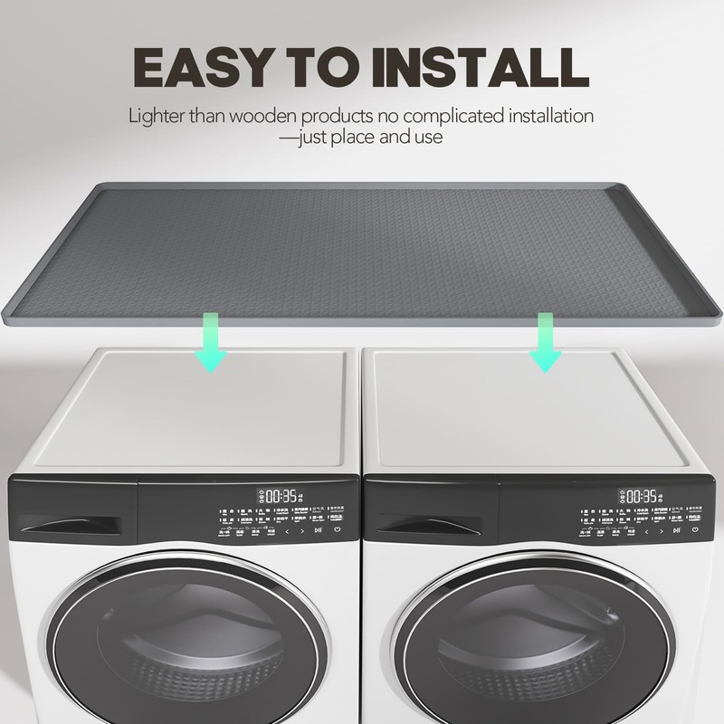- Extra-Large Silicone Mat for Washer and Dryer Tops: This Washer and dryer covers for the top measures 51.2"" x 25.6"" and weighs 3.4 lbs, providing ample coverage for most washers, dryers, or other household appliances. Ensure compatibility by measuring your machine before purchase.