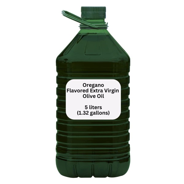 Oregano Flavored Extra Virgin Olive Oil, Product of Italy, Cold-Pressed, 100% Pure, High-Quality, Heart-Healthy Oil for Cooking, Grilling, Barbequing, and Smoking, 5L (1.32 gal.) (Pack of 1)