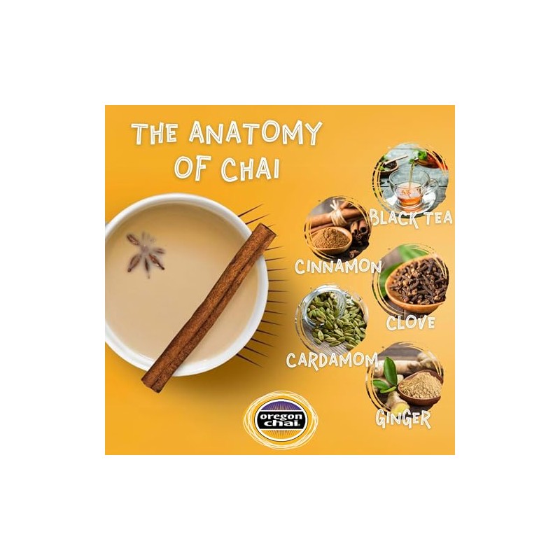- Nothing Beats the Original: For over 25 years, Oregon Chai chai tea has been crafted with authentic clove, cardamom, cinnamon, ginger and black tea for the warm, spiced chai flavor customers know and love