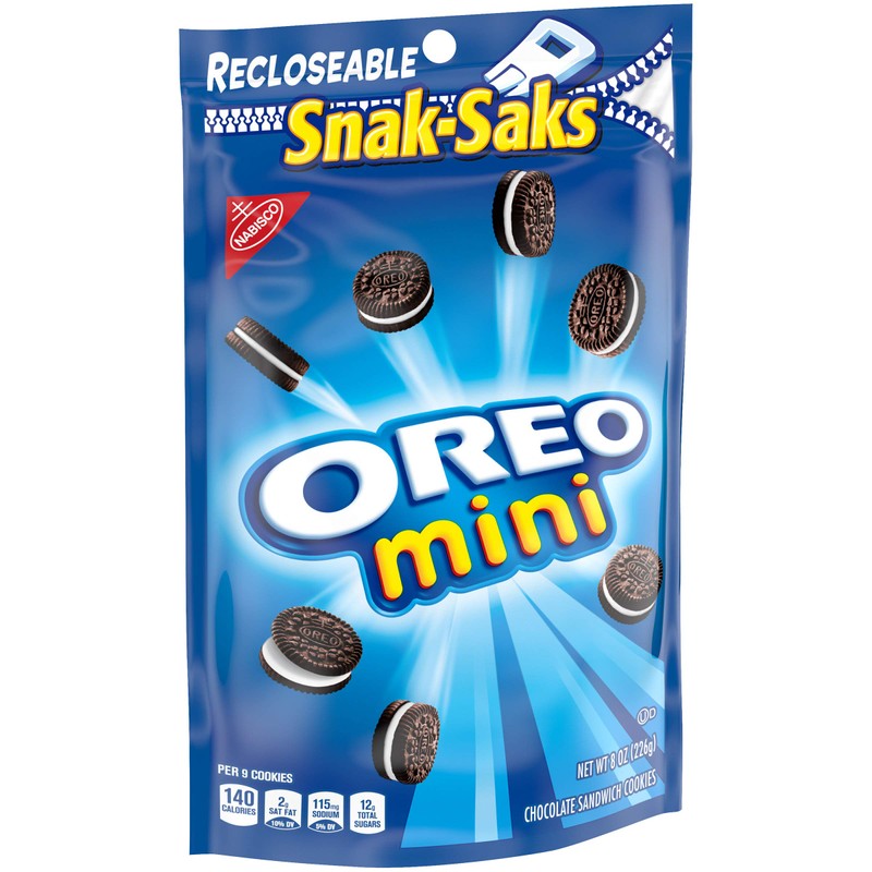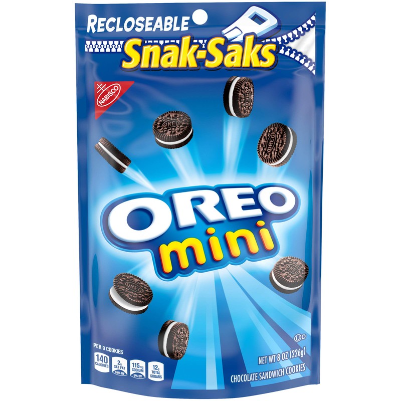 - Twelve 8 oz Snack-Sak bags of OREO Mini Chocolate Sandwich Cookies