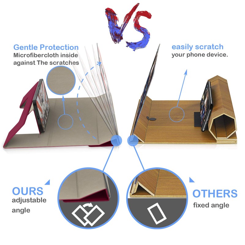 - [3D HD Mobile Screen Magnifier] This ORETech Screen Magnifier for Cell Phone works just like a phone projector screen,magnify the phone screen 3-4 times,View angle and distance can be adjusted, The ultra-high-definition screen in a variety of scenes allows you to have a private theater-like enjoyment or share with your friends&family.