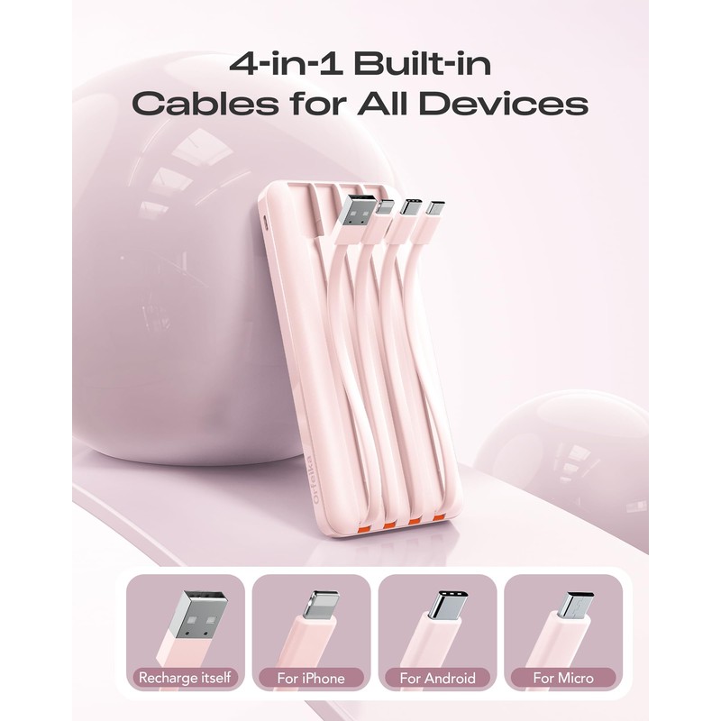 - Built-in 4 Cables: Includes 3 output cables and 1 input cable, letting you charge almost all devicesiPhone, iPad, Galaxy, other USB-C phones, tablets, and Micro deviceswithout carrying extra cords or adapters.