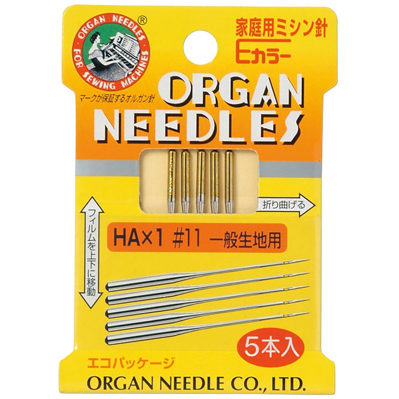オルガン針 ORGAN NEEDLES 家庭用ミシン針Eカラー HA×1 #11 一般生地用