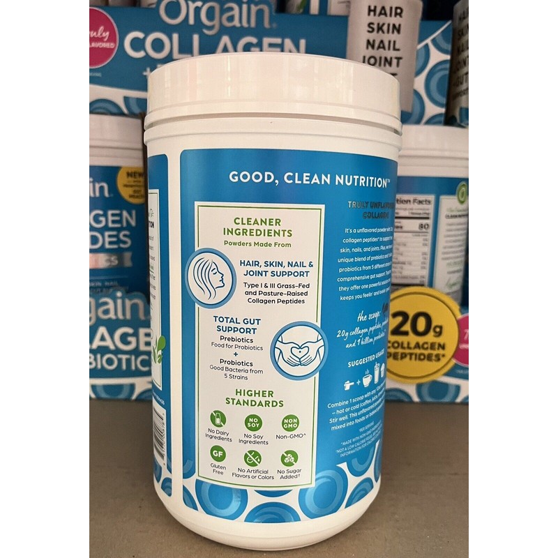 V Orgain Collagen + Probiotics Unflavored, 1.6 Lbs 25.6oz NEW