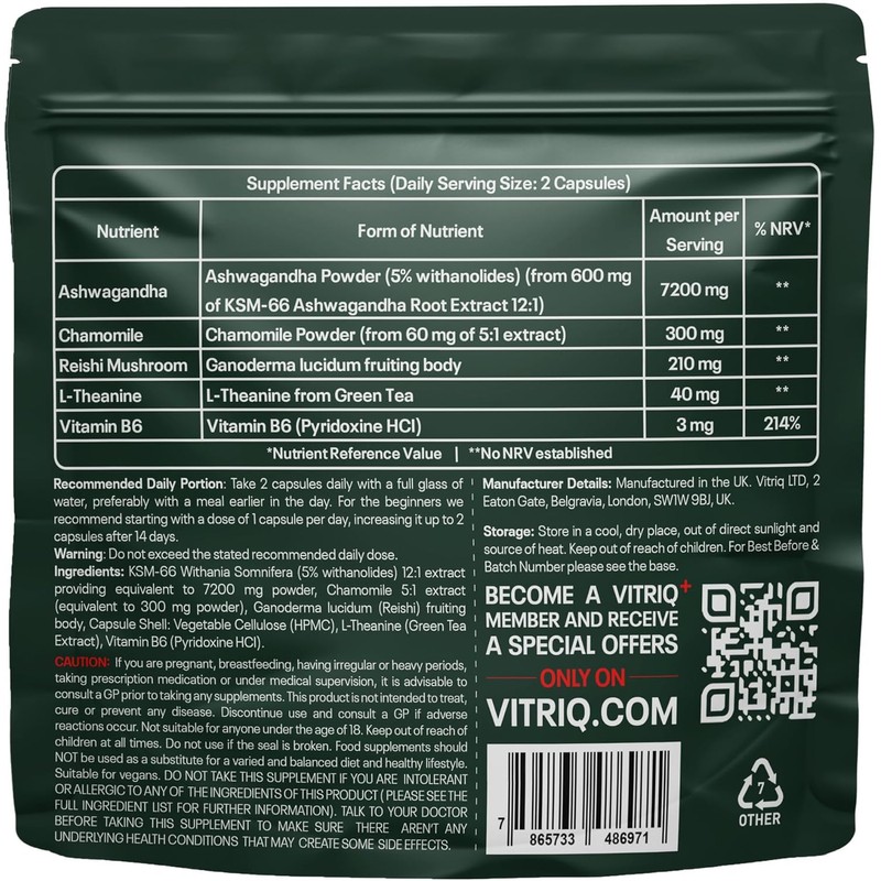 Organic Ashwagandha KSM-66 High Strength Complex 7200mg, 1-a-Day Capsule Calm Complex for Stress, Helps with Anxiety Relief & Restful Sleep with Chamomile, Reishi, L-Theanine, Vitamin B6-60 Capsules