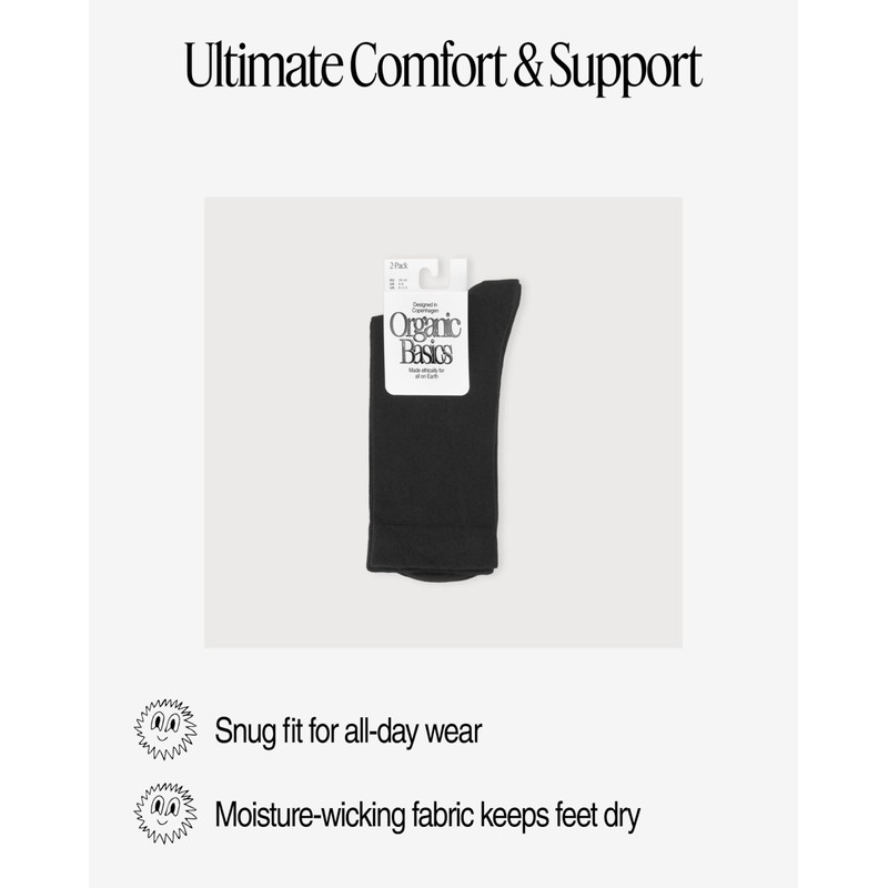 Organic Basics Unisex Core Crew Socks 2-pack, Black, 10-12