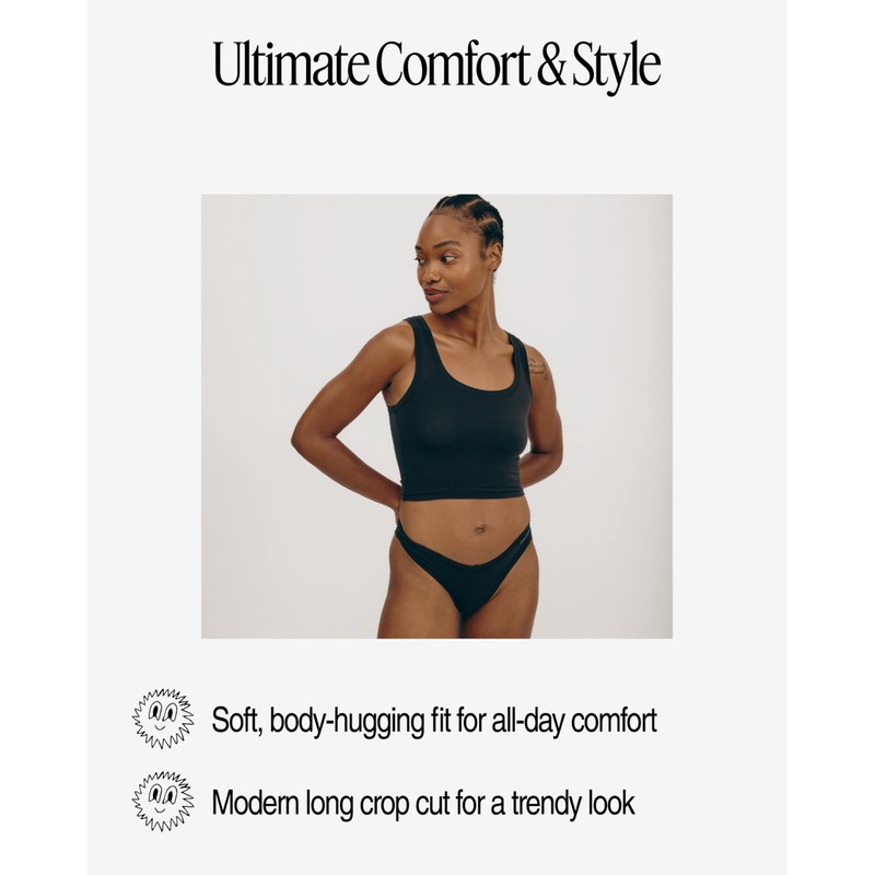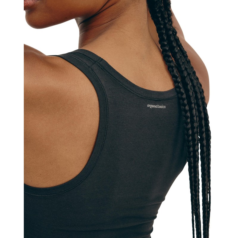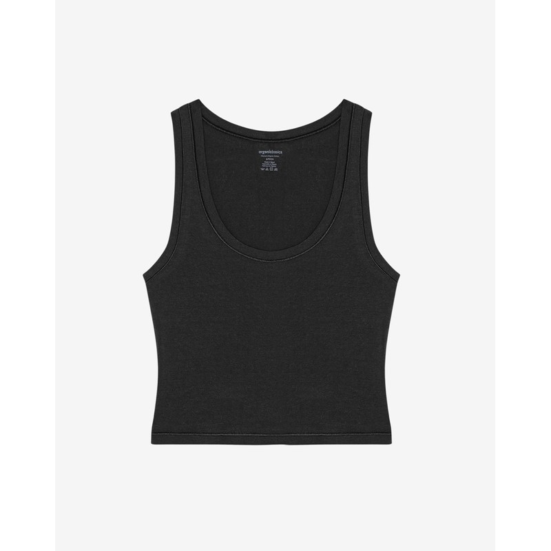 • Body-hugging scoop neck tank top, with a long crop cut.