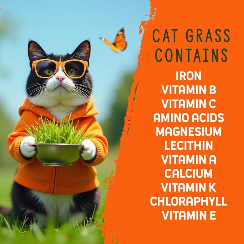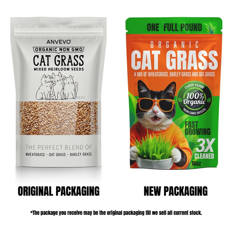 - Organic Cat Grass: This product contains a blend of organic, non-GMO wheatgrass, oat grass, and barley grass seeds for growing fresh cat grass.