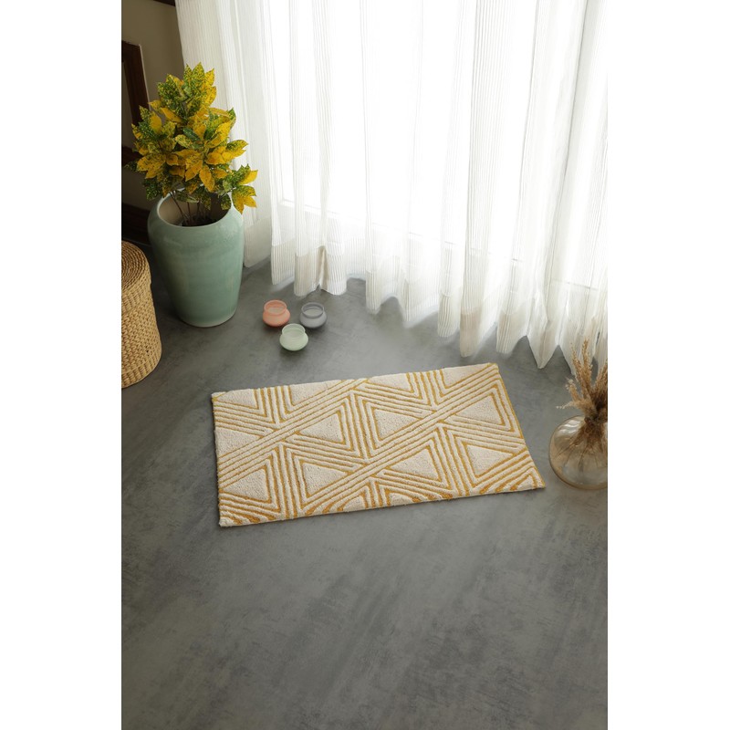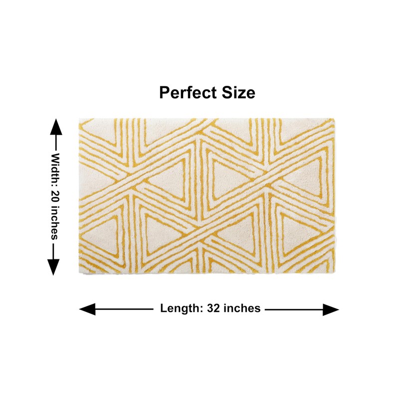 Organic Cotton Bathroom Rug, Luxury Non Slip Ultra Soft & Water Absorbent | Triangles Design Premium Bath Rug | Perfect for Tub & Shower, Toilet Floor Door Bath Mat (32"x20" Ivory & Yellow Ochre)