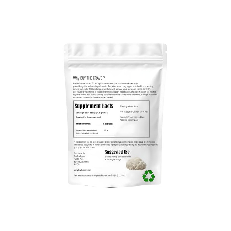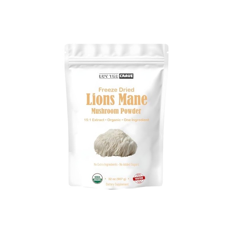 Organic Freeze Dried Lions Mane Mushroom Powder, Extract 15:1, Memory, Focus, Cognitive Support, 1.5 Gram Per Serving, Supplement Powder - Non-GMO, Vegan, USDA Organic - 32 oz (907g)