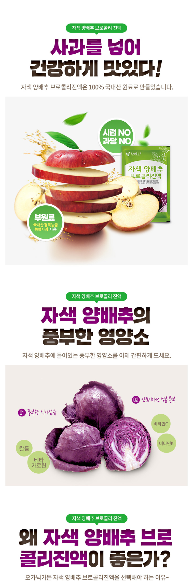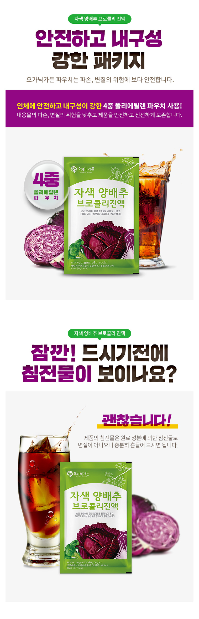 Organic Garden Purple Cabbage Broccoli Essence 90ml*30 Packets 5BOX / 오가닉가든 자색 양배추 브로콜리 진액 90ml*30포 5BOX