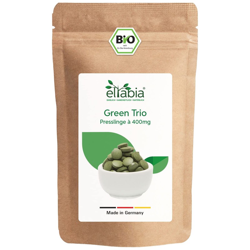 - Organic certified premium green trio presslings - Balanced mix of one third of spirulina, chlorella and barley grass. eltabia Green Trio tablets are produced under strictly controlled EU compliant conditions.