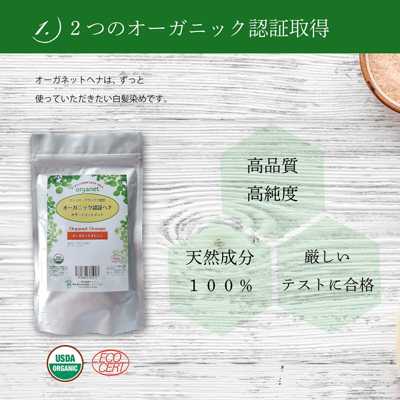 The Henna Color of the Organette series has acquired organic certification from USDA (USA), the world's largest organic certification organization. They are manufactured to the strictest standards than organic certification standards, so there is no room for any other ingredients besides the contents and there is no room for any chemical ingredients.