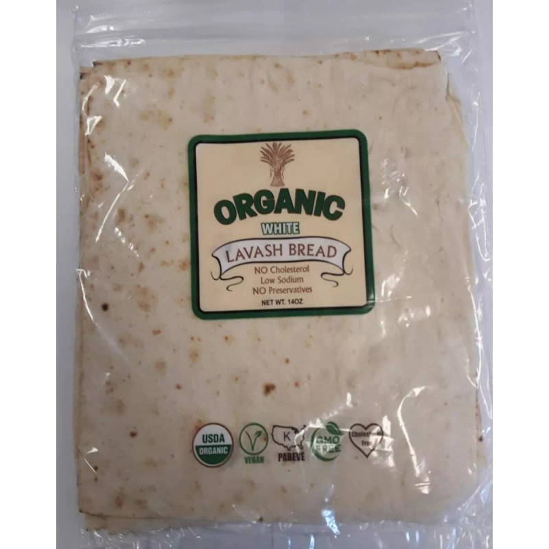 - Organic Lavash Bread (White), USDA Organic, Vegan, Pareve, GMO Free, Cholesterol Free, Low Sodium, & No Preservatives