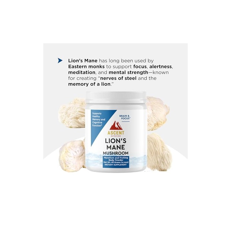 Organic Lion's Mane Mushroom Powder | Grown in The USA | Supports Healthy Memory and Cognitive Function | 2 Grams per Scoop