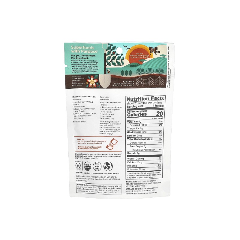 Ingredients : Certified organic gelatinized maca powder