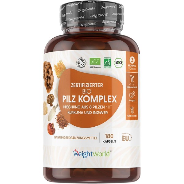 Organic Mushroom Complex with 8 Mushroom Varieties – 180 Capsules – 1000 mg w...