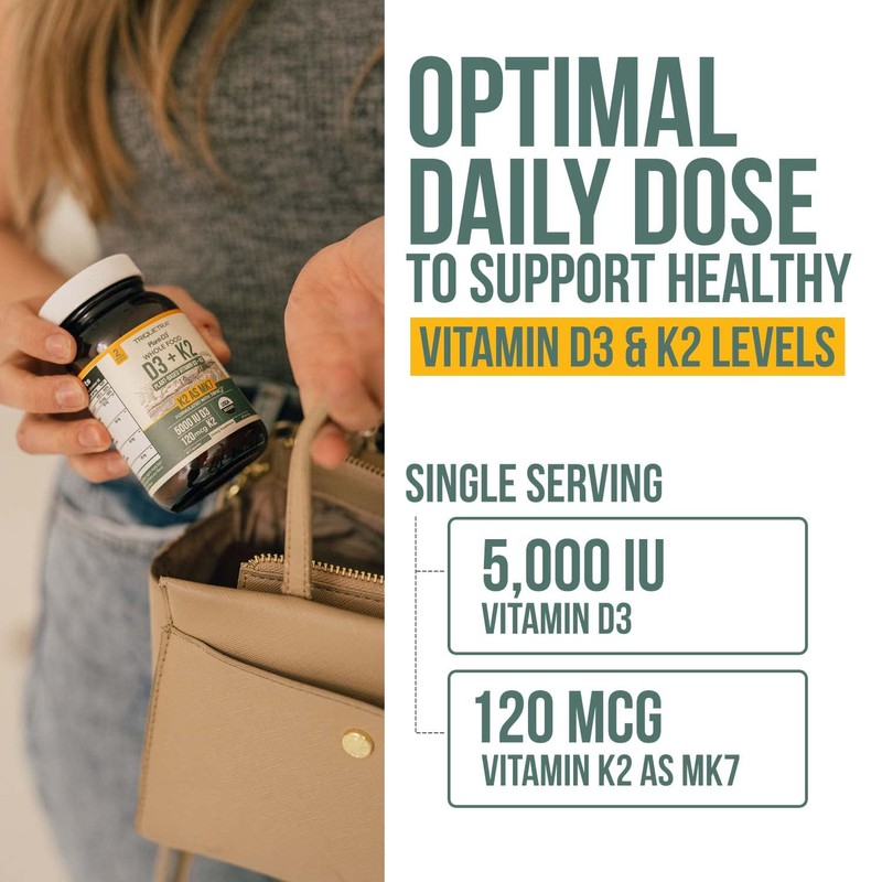 Organic Plant D3 + K2 | 5000 iu D3 + 120 mcg K2 as All-Trans MK7 from MenaQ7®...