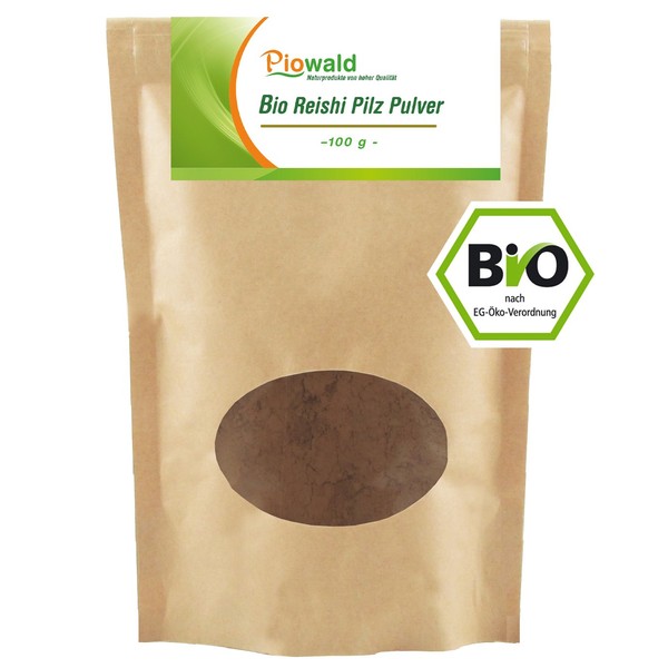 - Organic Reishi mushroom powder from controlled organic cultivation.
