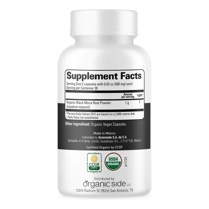 Organic Side Maca Negra Orgánica 500mg 60 Caps Sfn